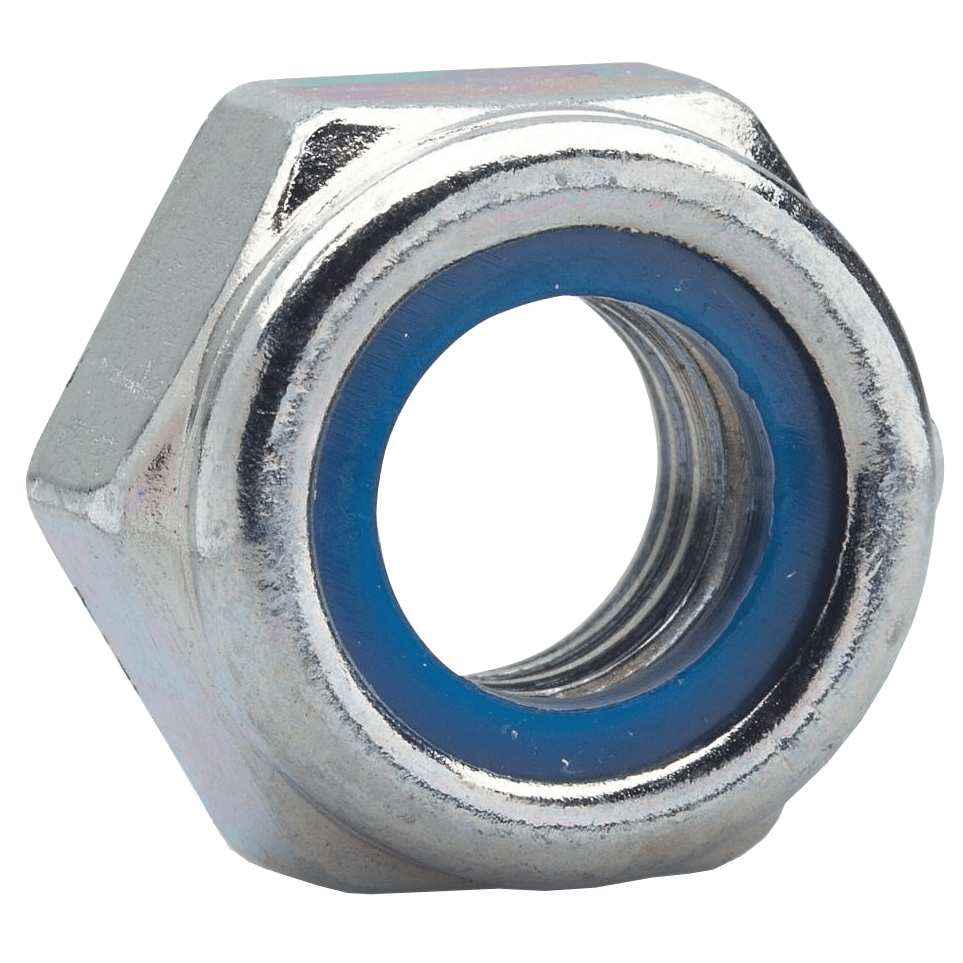 Sexkantslåsmutter DIN 985. Med plastinsats. Ytbehandling: Elförzinkad. SB.