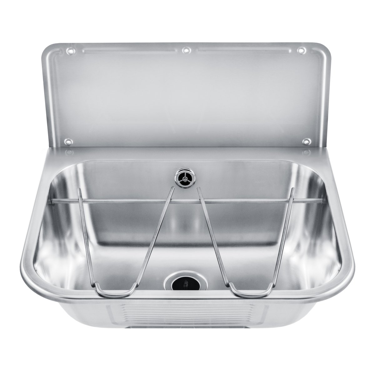 Tvättlådan har en förlängd bakfläns samt förhöjt stänkskydd mot vägg. Universaltvättlådan levereras komplett med 1 1/2" avloppsventil med plugg och kedja samt bräddavlopp och utslagsgaller.