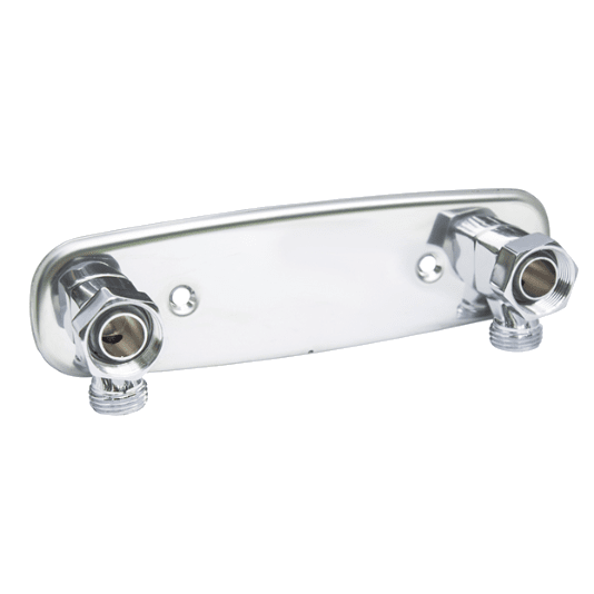 Rostfritt, blankpolerat blandarfäste 160 cc avsett för utanpåliggande rördragning, med vridbara anslutningsvinklar. Anslutning mot blandare M26x1,5 och anslutning inlopp G15. Med plantätning för halvkopplingar. Inklusive VVS-skruv. Brickans mått 210X60 mm.