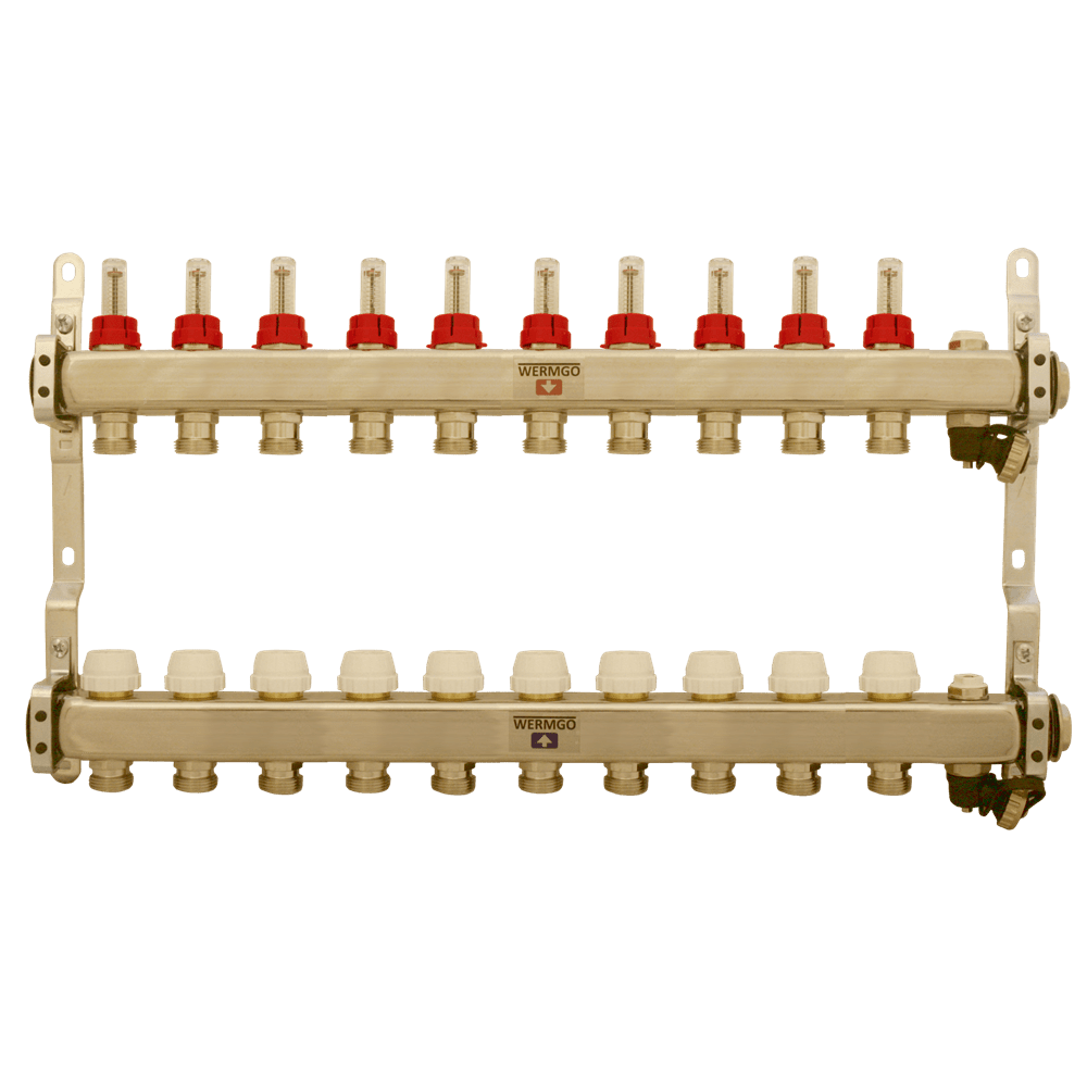 Produktbeskrivning:Robust och rostfri fördelare svarvad i ett stycke, anpassad för upp till 10 golvvärmeslingor. Utformad för enkel installation och pålitlig drift i vattenburna golvvärmesystem.