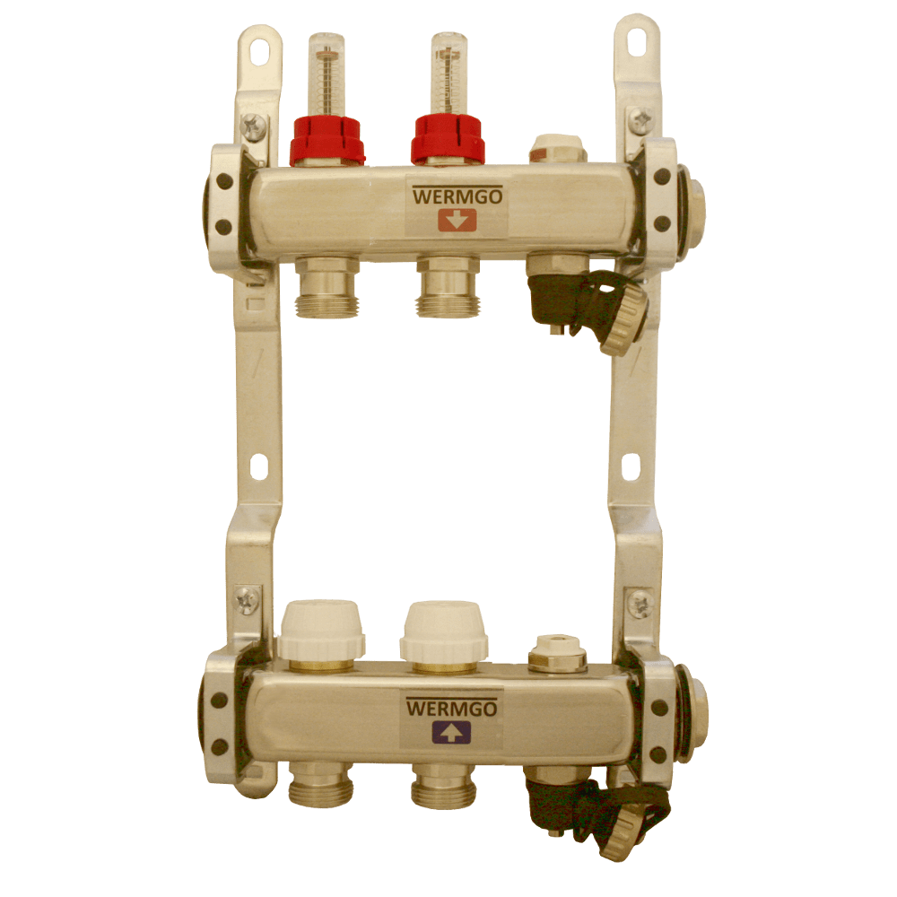 En liten men komplett fördelare för effektiva golvvärmesystem med upp till 2 slingor.
