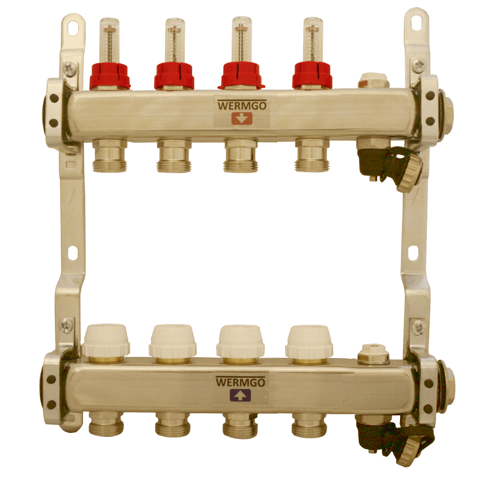 Produktbeskrivning:Robust rostfri fördelare svarvad i ett stycke, anpassad för upp till 4 golvvärmeslingor. Utvecklad för mindre till medelstora golvvärmesystem med fokus på stabil drift och enkel hantering.