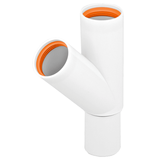Grenrör 45° Falu Vulk 73320 med 3 muffar vit PP 32 mm, Faluplast