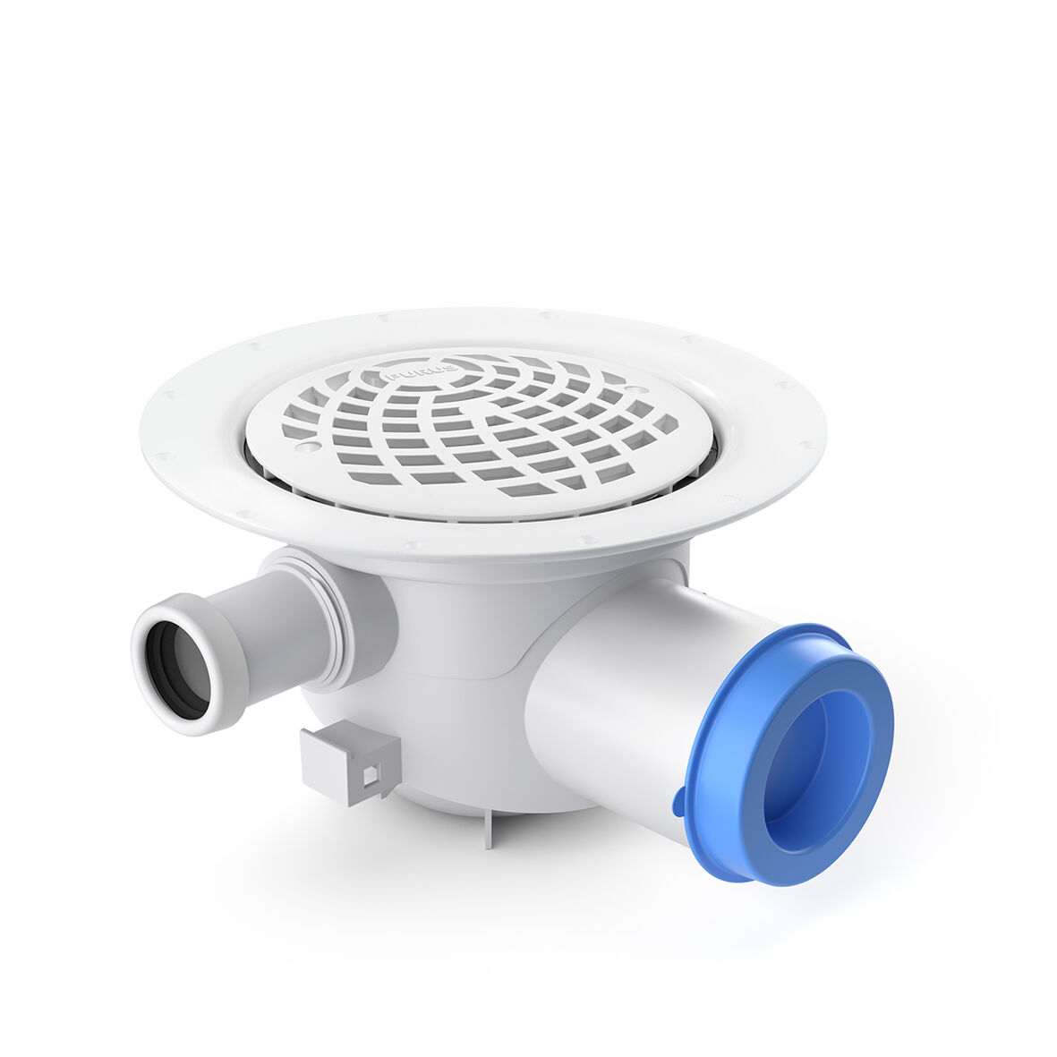 Golvbrunn Våke är en golvbrunn med 75 mm sidoutlopp med tre extra Ø32 inlopp för installation i trä- eller betongbjälklag.Bygghöjden är 130 mm. Bara ett av extra inloppen ska användas vid installation. Golvbrunnen levereras med ett urtagbart golvbrunnsvattenlås, VL-muff Ø32, automatisk klämring och plastsil. Golvbrunnen är försedd med ett skyddslock som är avsett för att förhindra gjutning och flytspackel från att komma ner i golvbrunnen. Vid installation tillsammans med Monteringsplatta Utgård ska distansringen inte användas.