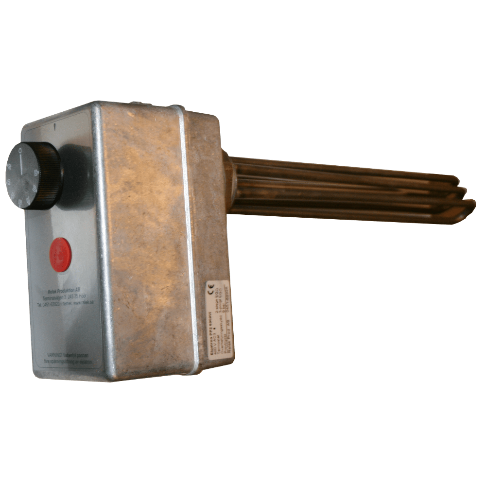 Alla element är 400V kopplade vid leverans. Elpatronen finns med R50-gänga i mässing.