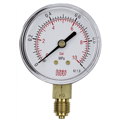 Manometer E.M.S. levereras med 1/4" anslutningsgänga i mässing.