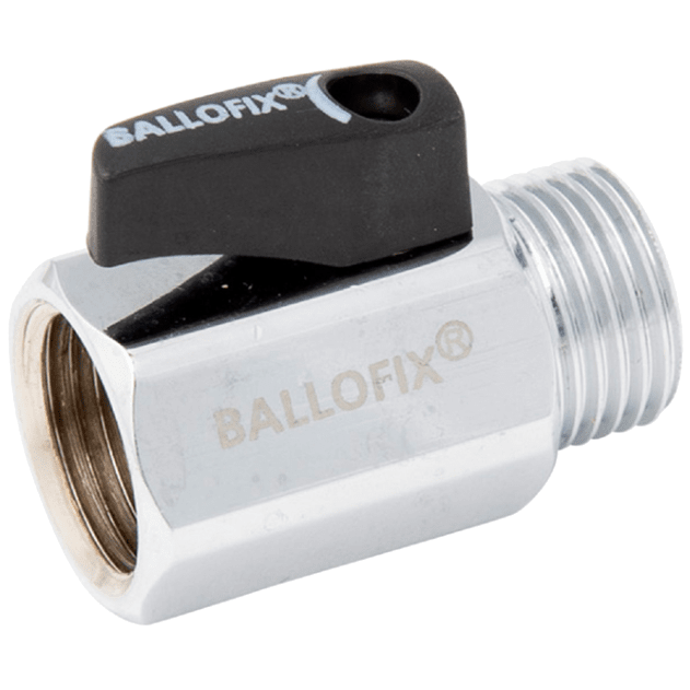 Ballofix® 503 Rak kulventil R10xR10, med invändig gänga x utvändig gänga förkromad med vred