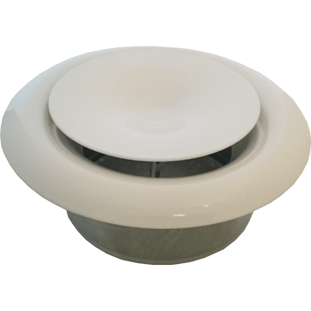 Komplett sats. Donen består av en fästfläns med påmonterade fjädrar som fäster donen i fästram eller ventilationsrör, samt en aerodynamiskt utformad strypkägla. Donet är avsett för montage i tak eller vägg. En packning tätar runt donet och förhindrar nedsmutsning av tak och väggar. Reglerbar inställning av luftflödet. Byggmått i mm.