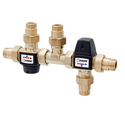 Serie VMC300 för tappvarmvatten med två källor. Solar Kit erbjuder optimerad energianvändning, skållningsskydd och komfort på ett kompakt och effektivt sätt. Eftersom den består av enbart termostatiska (icke-elektriska) komponenter är enheten helt fristående och möjliggör en mycket enkel installation.