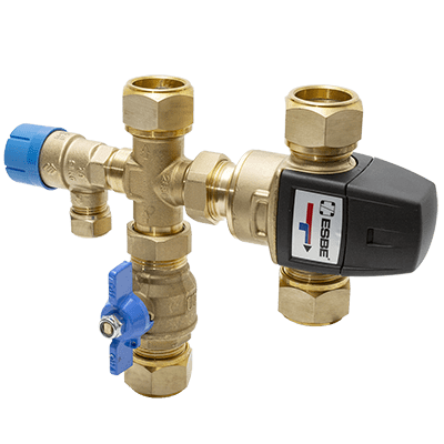 Serie VMB400, VMB500 är en kompakt ventilkombination för varmvattenberedare. Ventilkombinationen har inbyggd back- och avstängningsfunktion och anslutningar för säkerhetsventil, vakuumventil, o.s.v. Inkommande varmvatten regleras av termostatisk blandningsventil serie VTA320/VTA520.