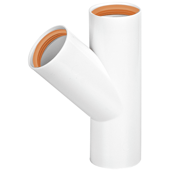 Grenrör 45° Falu Vulk 74820 med 3 muffar vit PP 40 mm, Faluplast