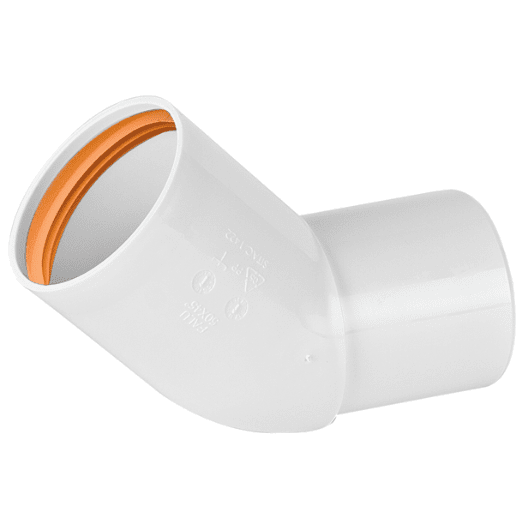 Vinkel 45° Falu Vulk 75040 med 1 muff vit PP 50 mm, Faluplast