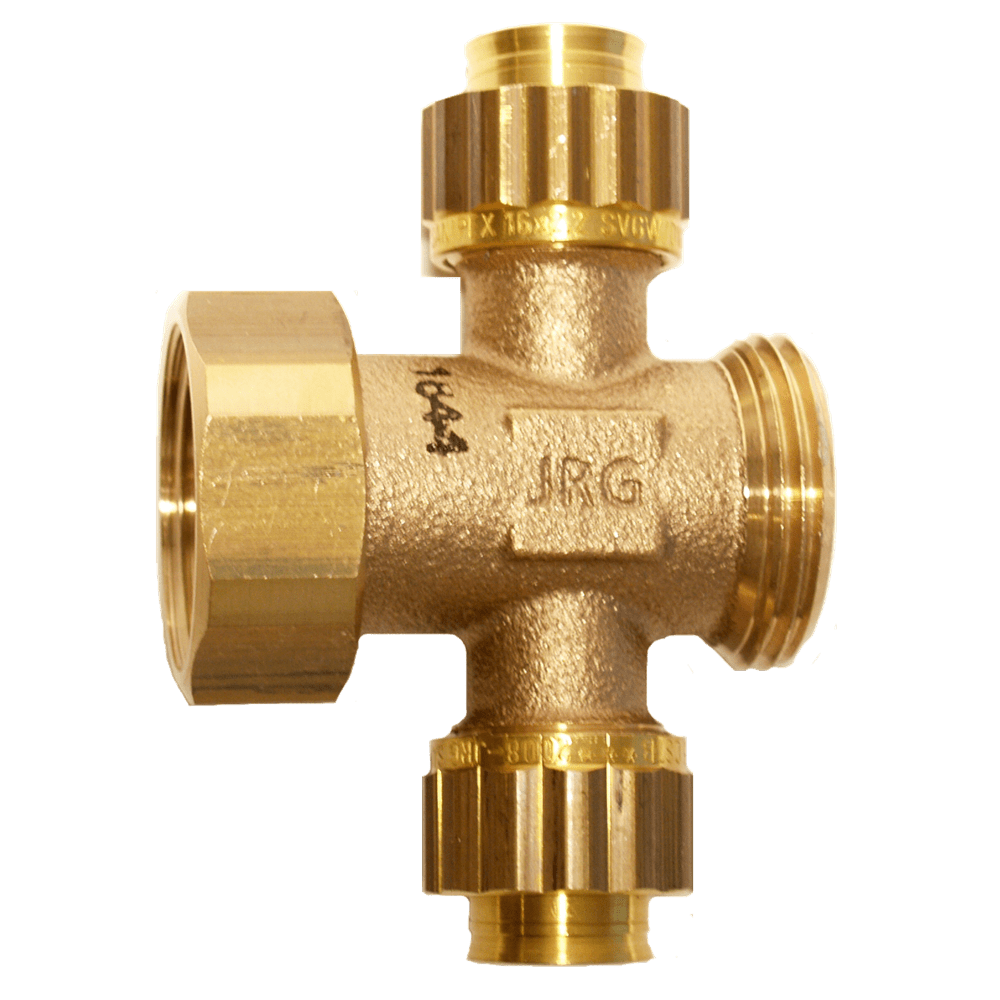Tappvattenfördelare kors 1+1 uttag kongrepp x löpmutter x utvändig 12x1,7 mm x 1" MN, Sanipex