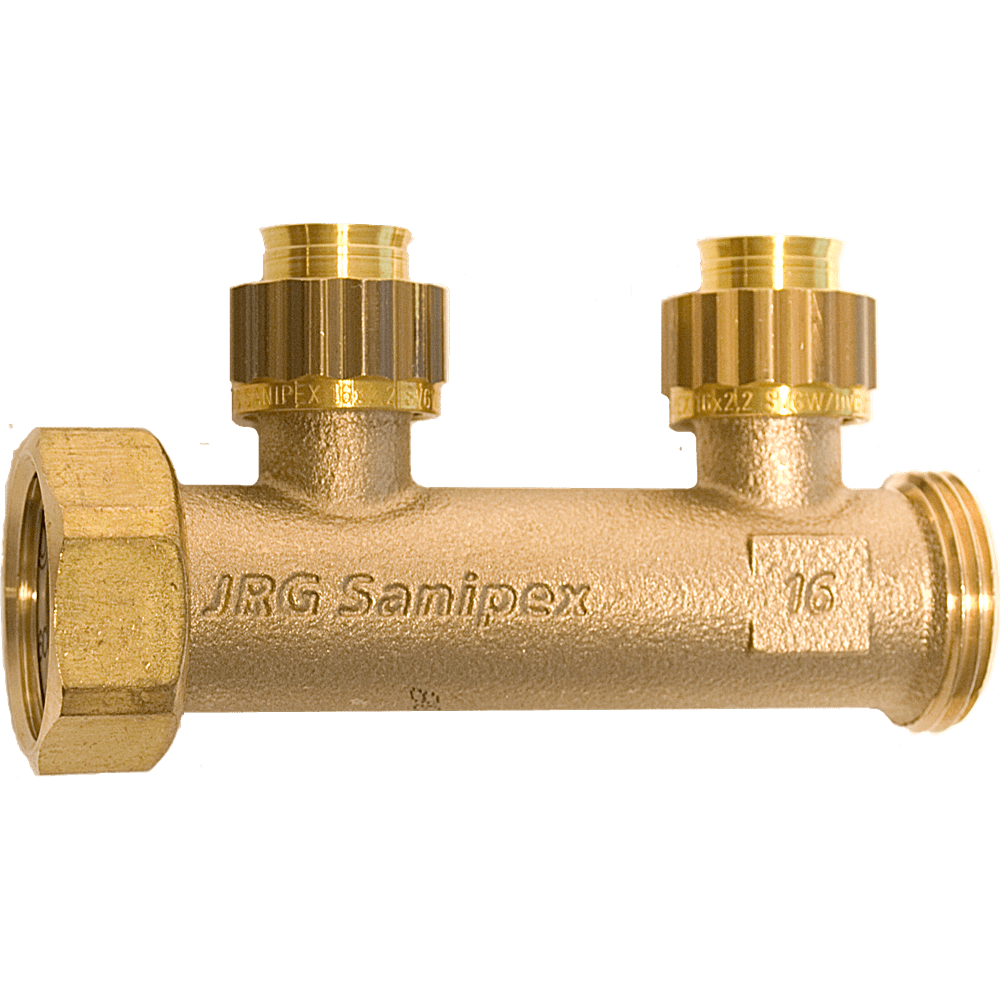 Tappvattenfördelarel 2 uttag kongrepp x löpmutter x utvändig 12x1,7 mm x 1" MN, Sanipex