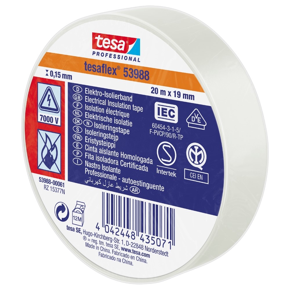 Eltejp Tesa 19 mm x 20 m, Hvit