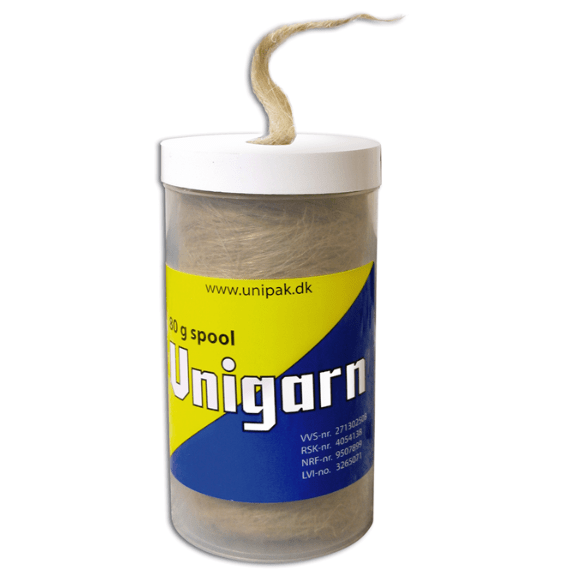 Unigarn är tillsammans med rörkitt väl lämpat för tätning av gängförbindningar. Unigarn ger i kombination med tätningsmedel täta och flexibla förbindningar och är mycket ekonomiskt att använda. 3-tråds tätningsgarn används för tätning av glaserade muffrör eller gjutjärnsmuffrör.